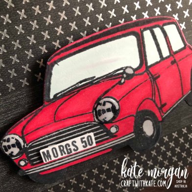 Check out the personalised number plate!!! I used the Make a Difference stamp set. The image is coloured with Real Red/Smoky