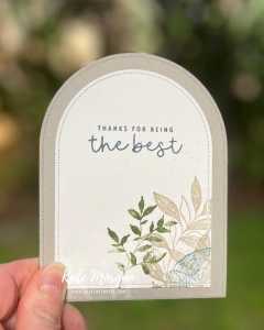 Other: Gold WOW Embossing Powder, Gathering Leaves 3D EF, Wink of Stella, Beautifully Adorned Ephemera Pack, Acrylic Blocks, Blending Brushes, Bone Folder, Paper Trimmer, Multipurpose Glue, Spritzer, Tear & Tape, Stampin’ Cut & Emboss Machine, Take Your Pick Tool, Simply Shammy, Heat Tool.