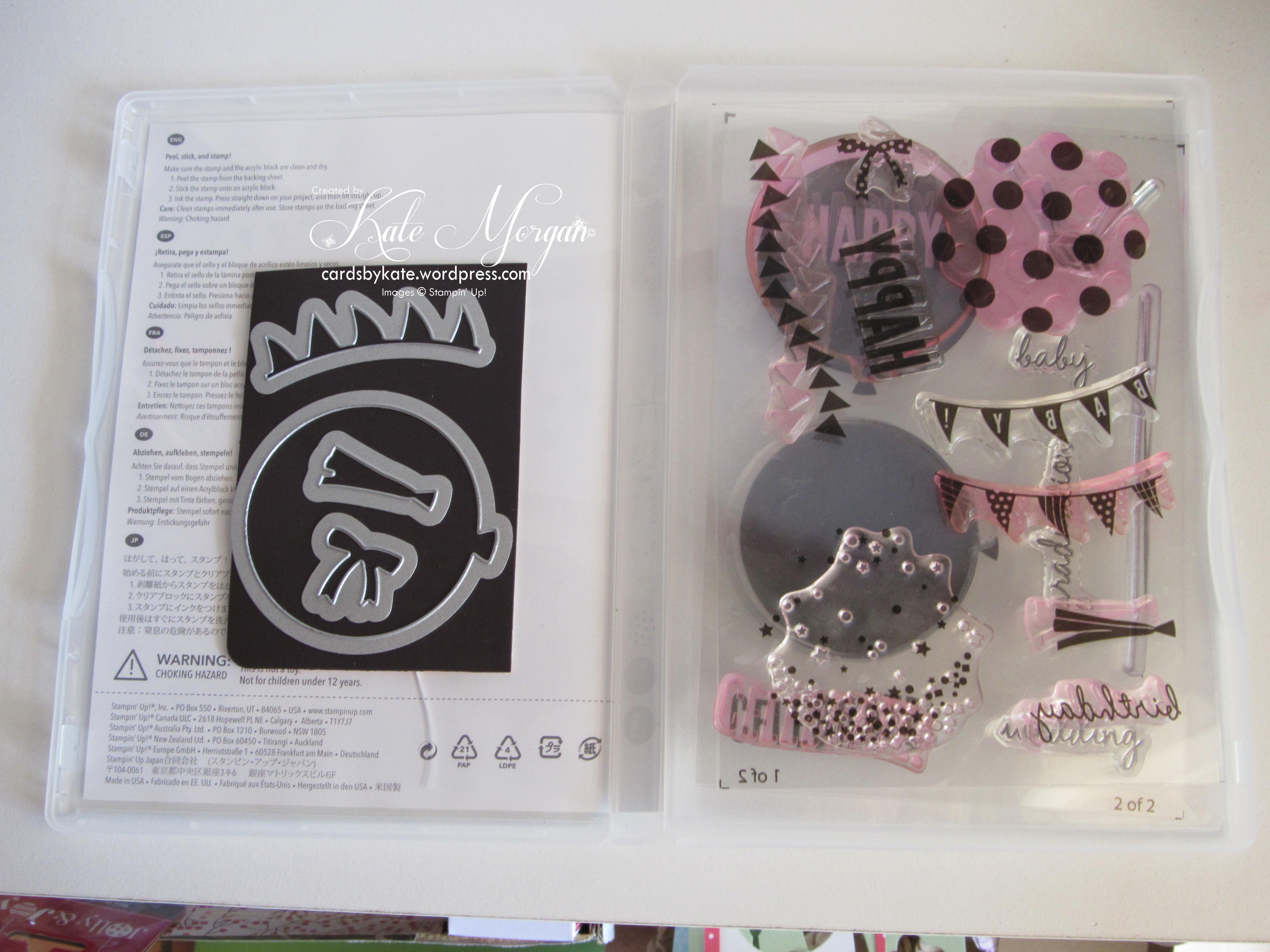 I have this Celebrate Today stamp set in photopolymer and it is the ideal type for 2-step stamping, as the stamp is completely clear and you can see exactly where to stamp the second image! Awesome!