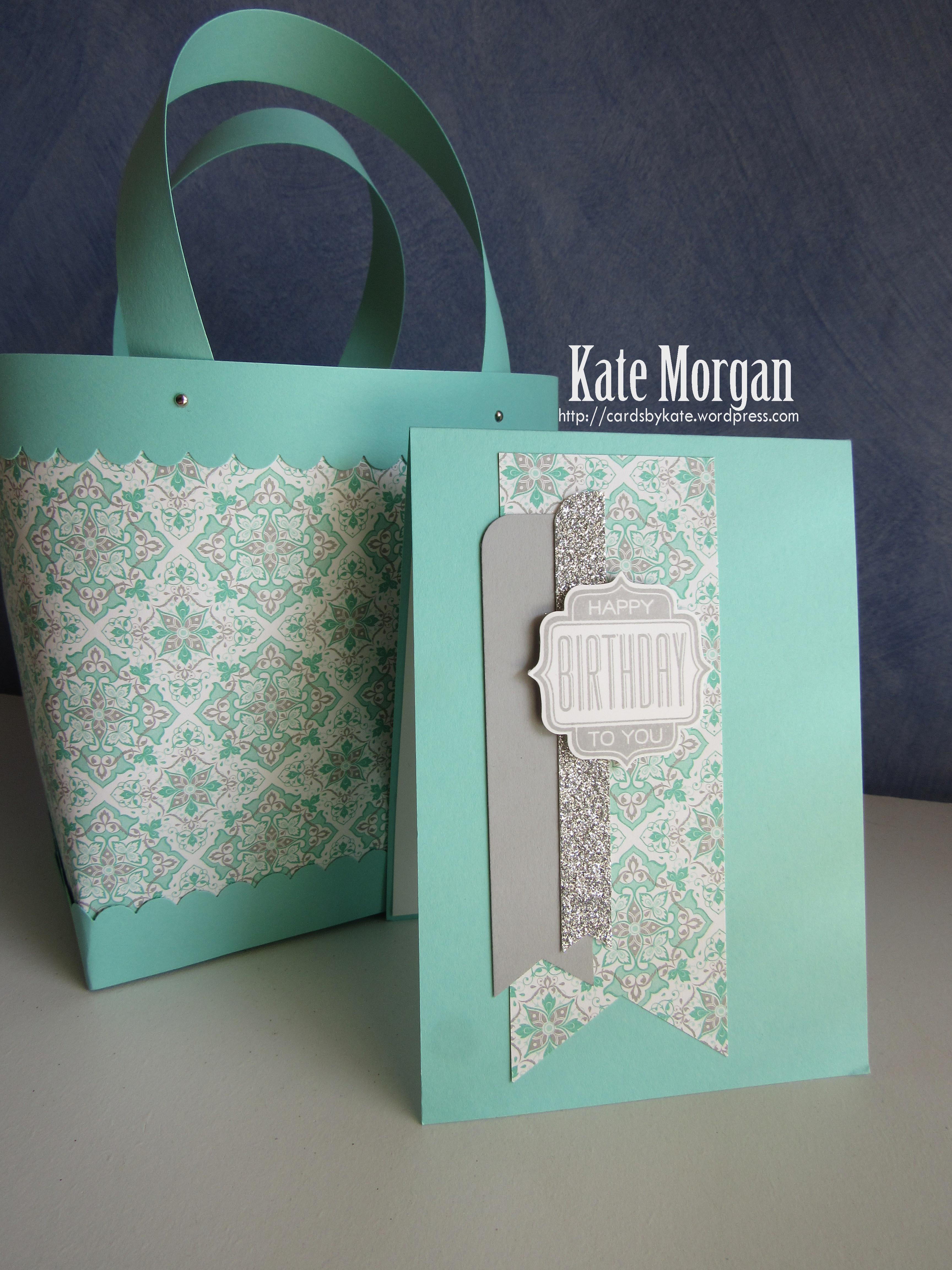 This is a great way to give a gift with a card and coordinating gift bag. I love how it coordinates and sits over the side of the gift bag between the ribbon, to display without hiding it in an envelope!