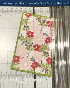 Glue the left panel in place, fold up the accordian section, holding it tight, add glue to the final panel, and fold the back of the card closed onto the front. Hold it for a few seconds to dry then you can add the Basic White panel [10cm x 5.7cm] to the inside.