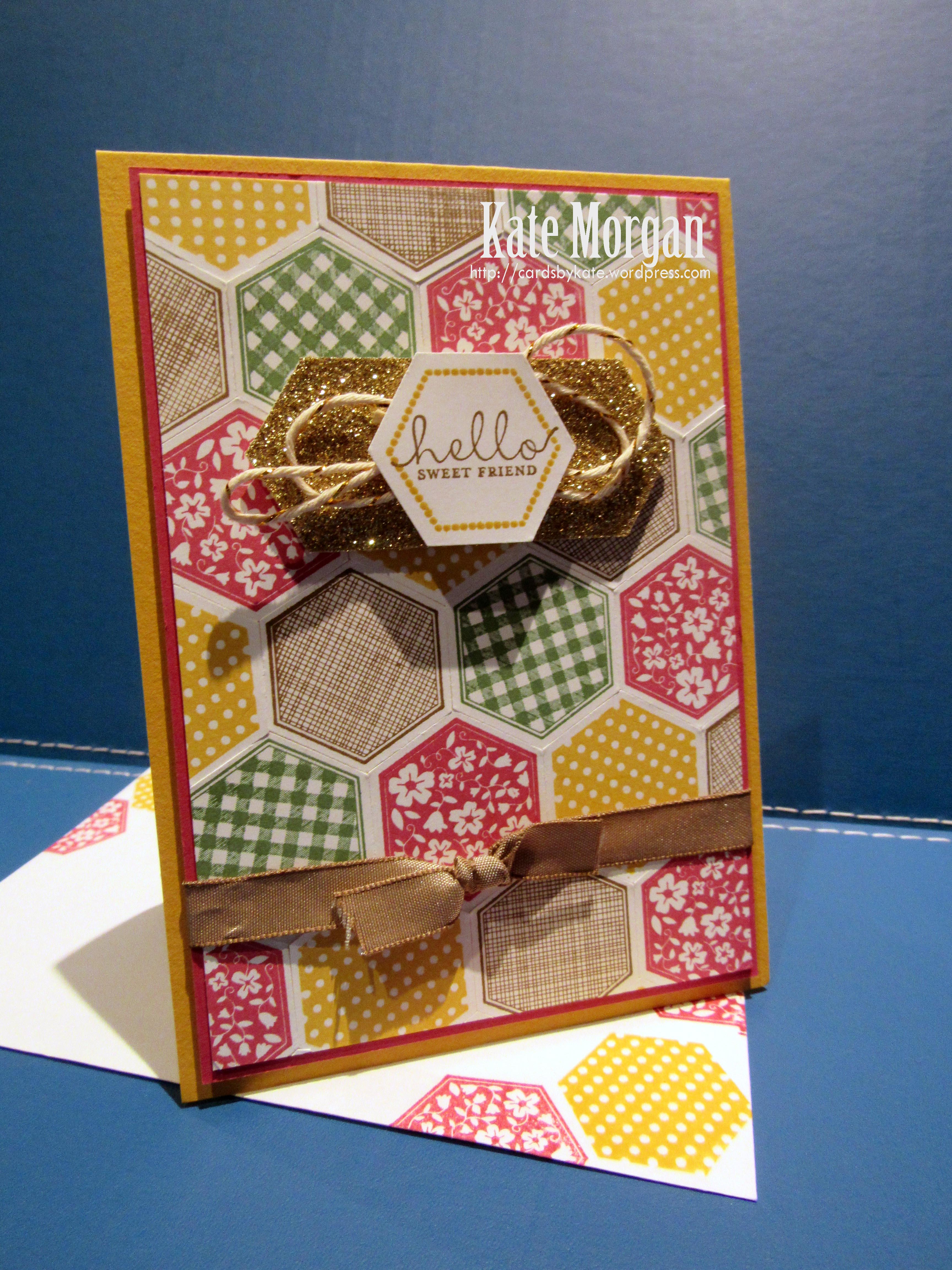 I stamped the hexagon images onto Whisper White cardstock in Pool Party, Soft Suede and Crumb Cake inks before punching them out with the Hexagon Punch.