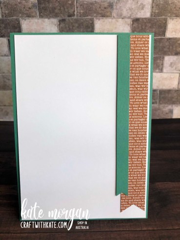 Die cut the fancy tree (largest) in the centre top of the woodgrain patterned paper and place some of the Just Jade patterned paper behind it. I selected that stripy patterned piece, as it looks a little like a string of lights or tinsel wrapped around the tree.