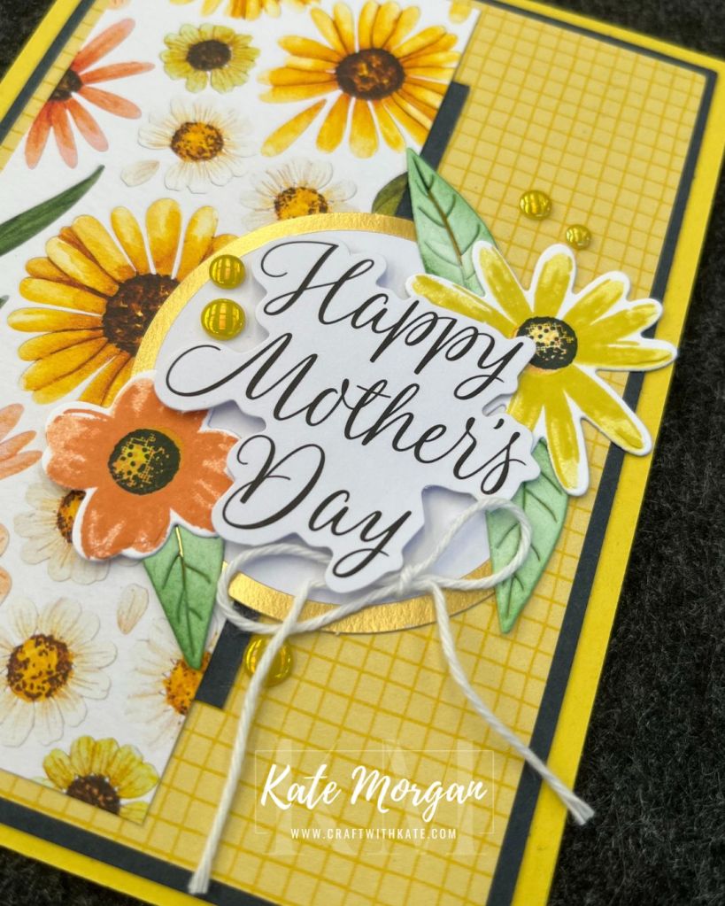 This handmade Mother’s Day card features; Impressions Abloom Bundle, Floral Impressions Designer Series Paper (DSP) and two Euphemera Packs, Foiled Frames & Labels and the Greetings for All Mix & Match. These diecut greetings are just brilliant for quick additions to your cards.