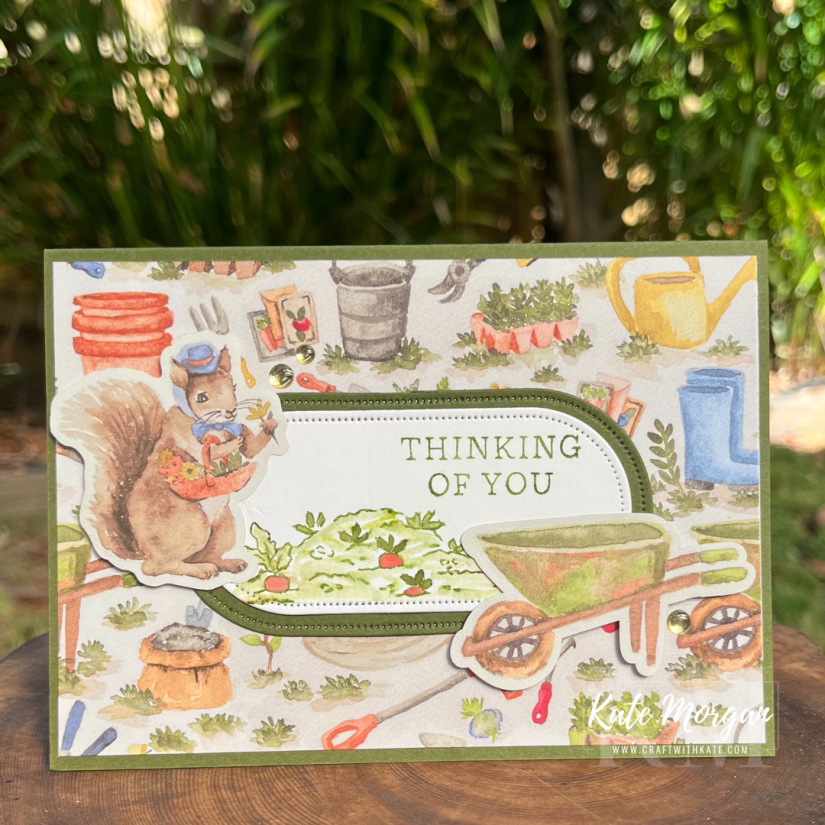 The image is stamped in Black Memento ink and coloured using Stampin’ Blends Combo Markers. Die cut using the coordinating dies and glued to the white frame.