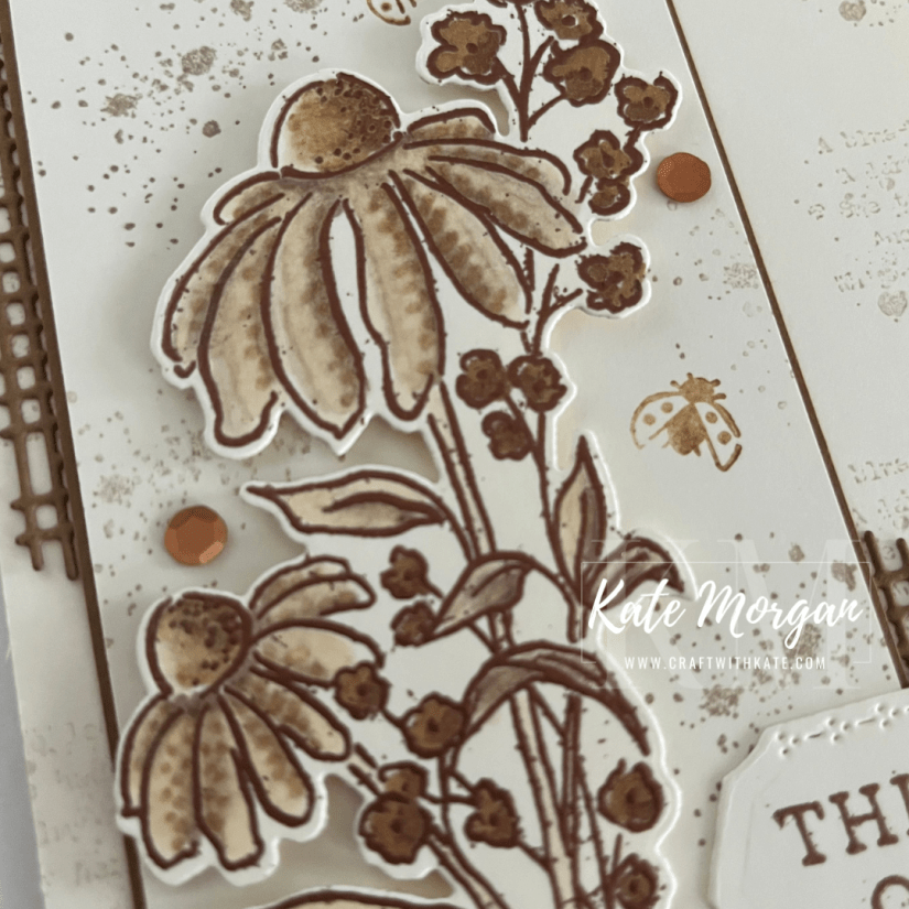 I decided to stamp the image again and fussy cut the tulips and oloured them again and added them on top with a Dimensional. Some stamped/coloured/diecut ladybugs were added for cuteness. The sentiment [Beautiful Butterflies] is stamped and fussy cut with a White Ribbon bow attached behind then added to the card on more Dimensionals. I used a retired corner rounder punch for the corners. Some 2024-26 In Color™ Resin Dots are added to finish.