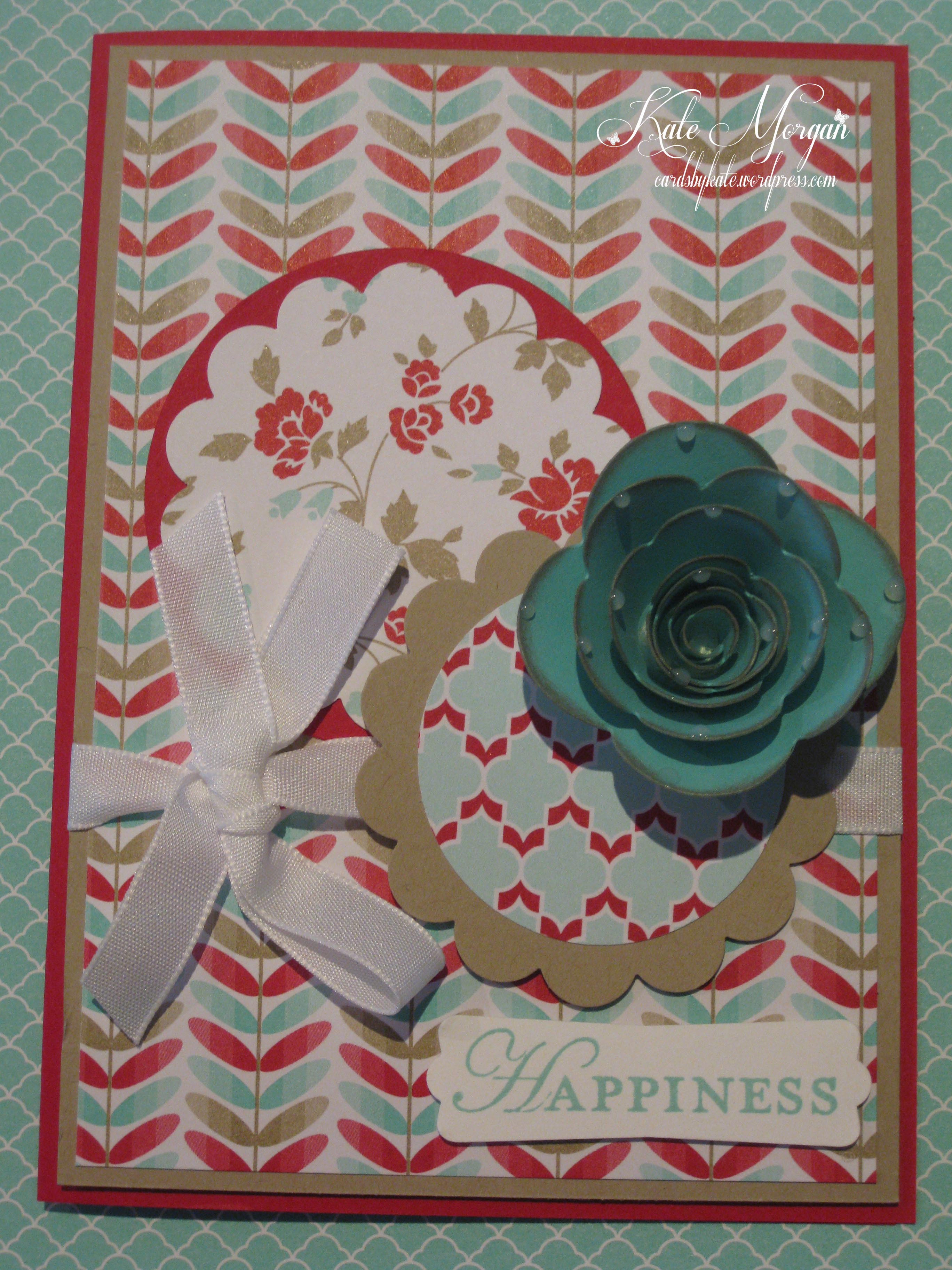 Well, my in-laws arrived yesterday (and no it’s not a bad thing, lol, I get along very well with them. She is also a SU demo!). But I had to wait until now to share this little creation with you, as my Mother-in-law has retired after many, many years being a Business Manager in a school in her country Victorian town. I needed something different and saw something similar but there were no instructions, so it took ages to cut and score and put together!!!!