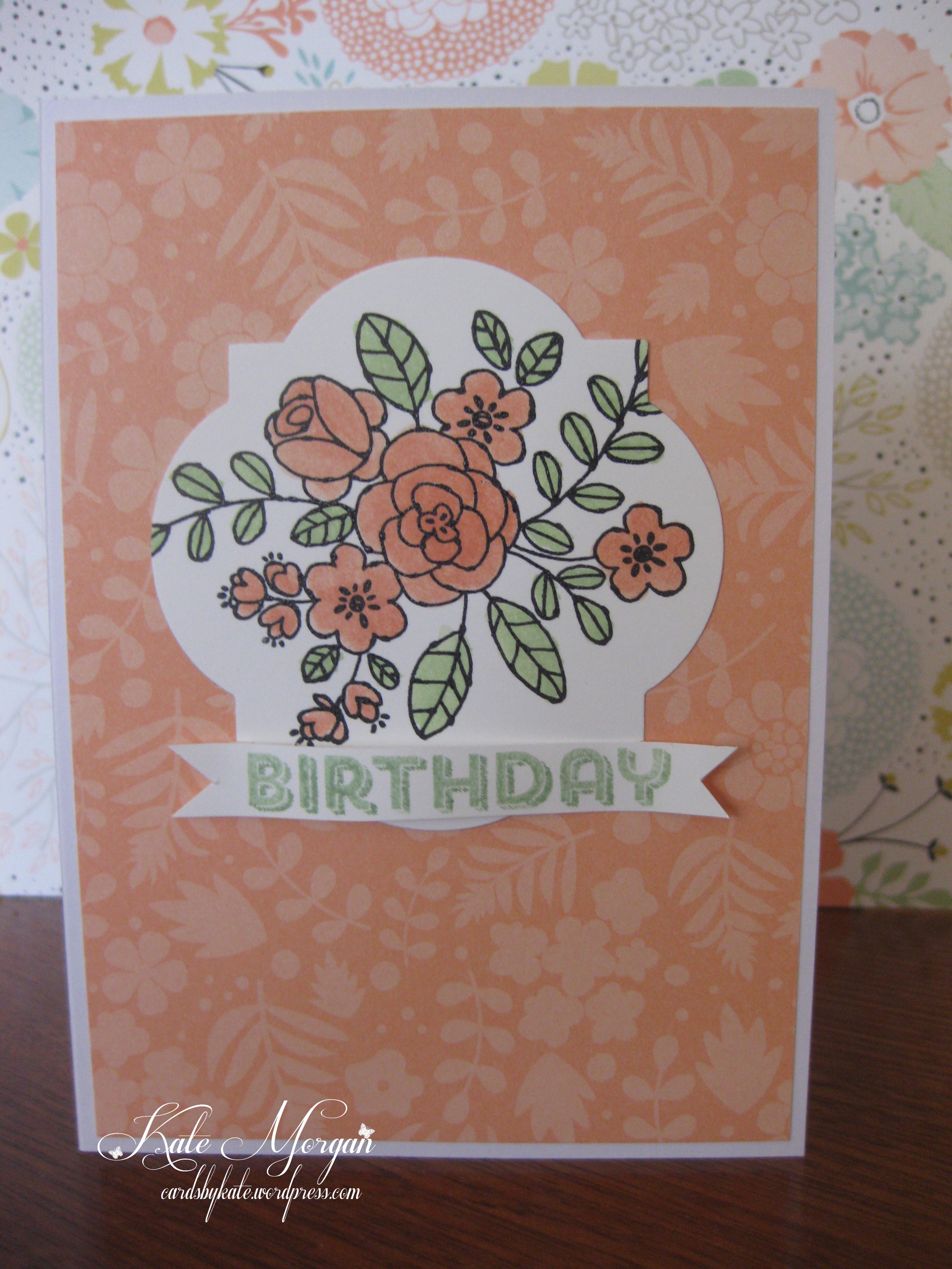 I did the base card in Pool Party, then added a layer of Whisper White and stamped two images from the Chalk Talk stamp set with Crisp Cantaloupe ink. I punched out the For You image with a 1-1/4″ circle punch and added it with dimensionals.