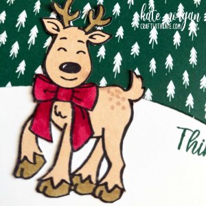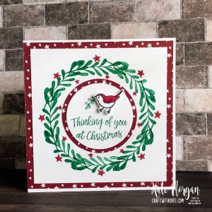 Gold Foil is layered onto the Soft Succulent card base with some of the stunning DSP on the top. The wreath die is cut in Evening Evergreen card. The sentiment is stamped with Soft Succulent ink onto a piece of Basic White card cut using the Everyday Label Punch, then added on dimensionals. Lastly I added a ribbon bow with the Gold 1cm Shimmer Ribbon.