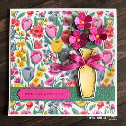 The Flowers for Every Season patterned paper is so pretty, that you don’t even need to add much extra to a card to make it special. However, in this case, I’ve added a vase of flowers for a sympathy card for a work colleague who recently lost her dear mum. Even though she was in her 90s, the pain is still so raw.