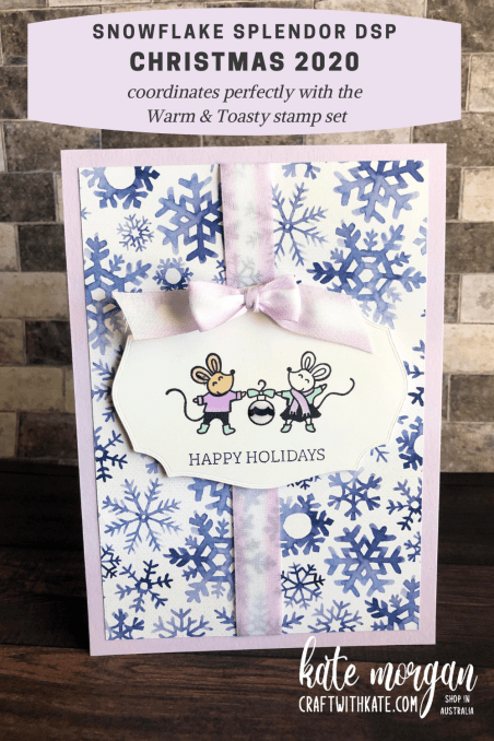 Tonight I have a fun Christmas card using the Warm and Toasty stamp set with the Snowflake Splendor DSP.