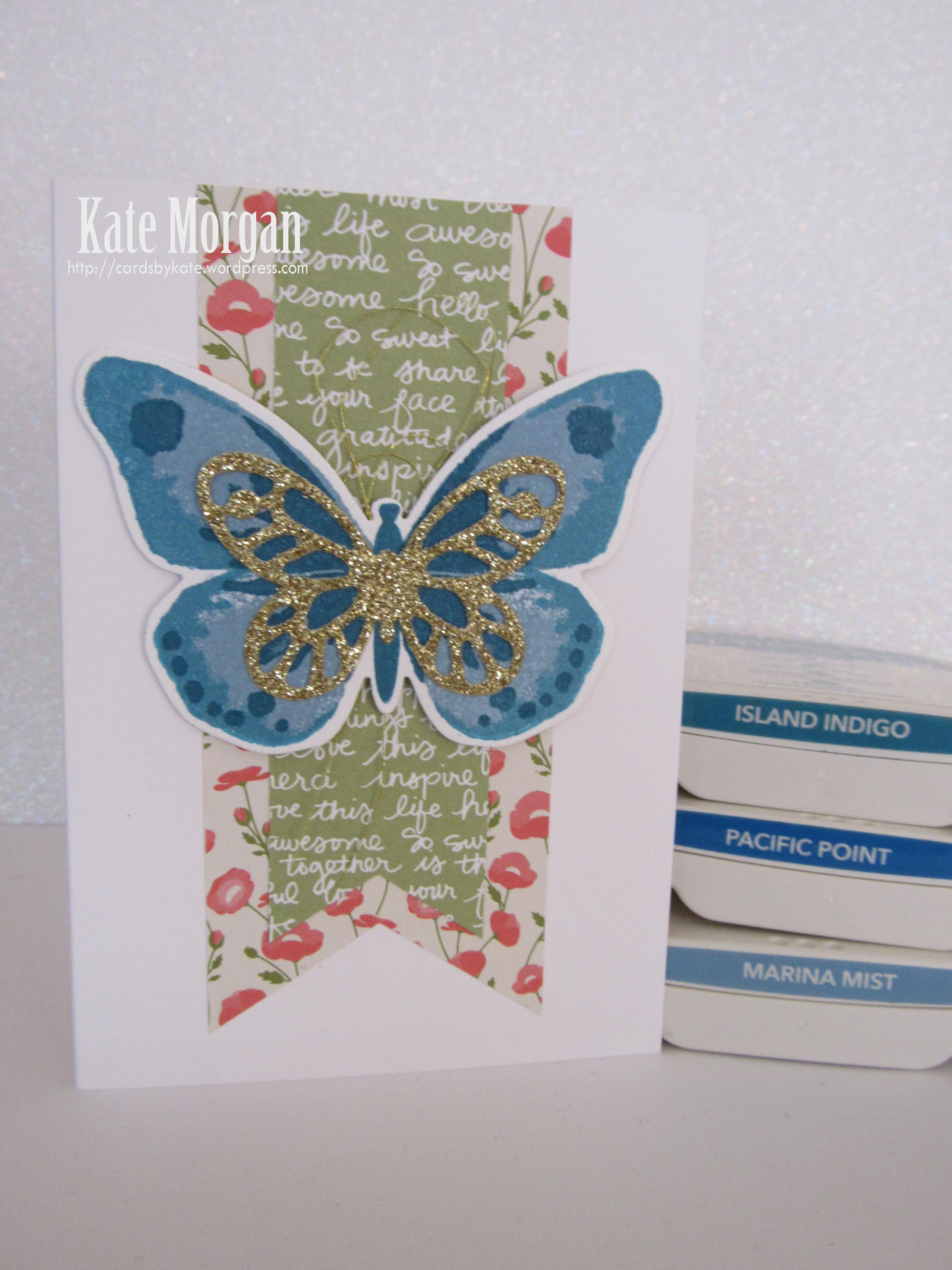 My next card uses the same products but I have teamed it up with the stunning Painted with Love DSP which will also retire on 31st May. It has this amazing gold through it. This card is a pop through card, where the butterfly slides through the slit when you open it!